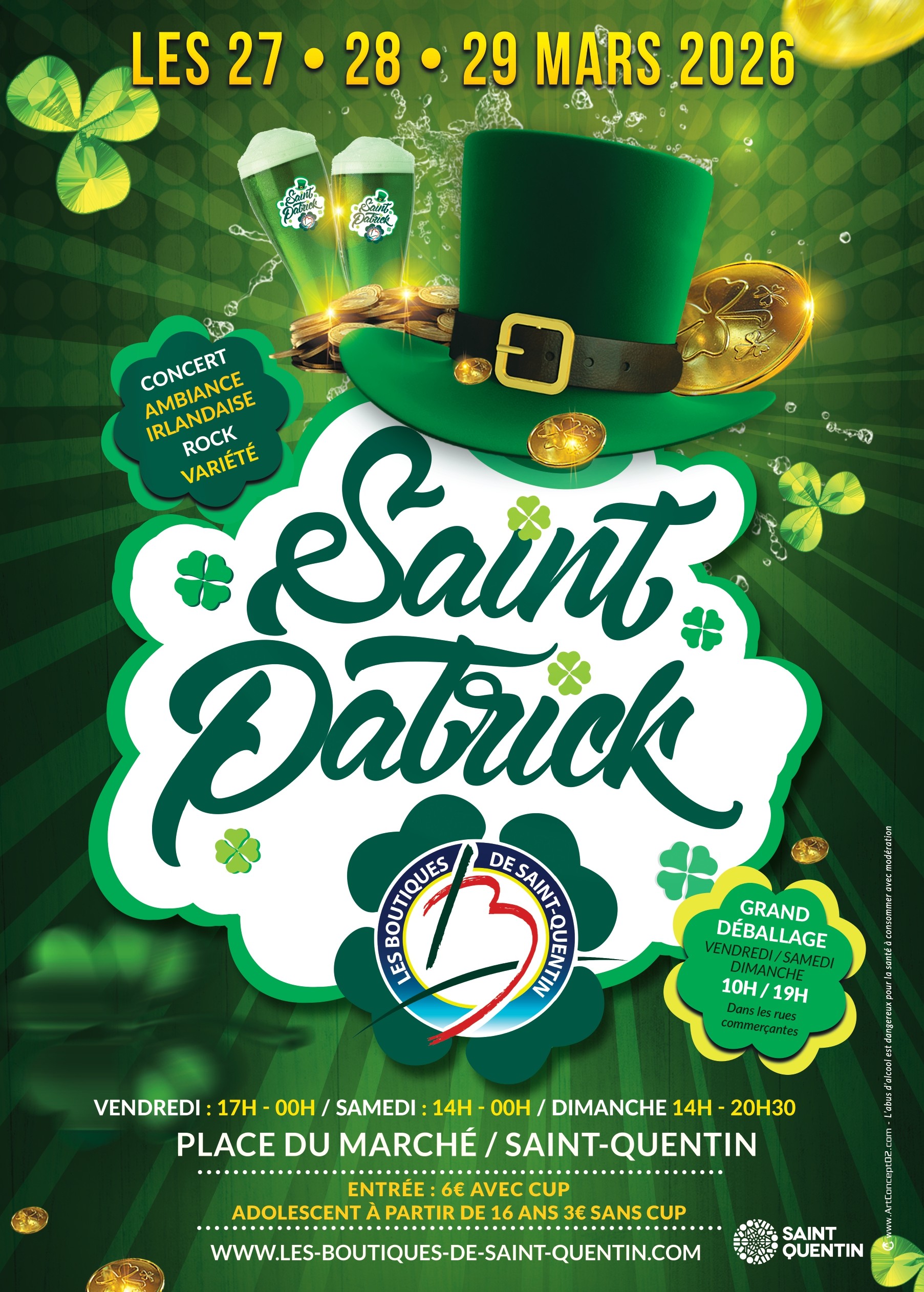 Rendez-vous à Saint-Quentin, sur la Place du marché, pour la Saint-Patrick ! Concerts, brasseurs, ambiance festive… tout est réuni pour passer un excellent moment.